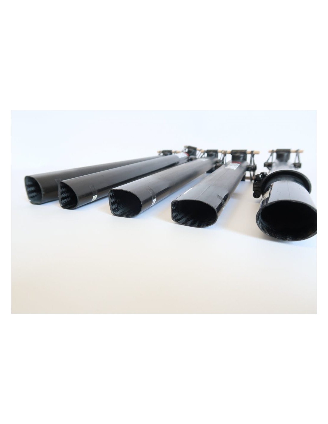 El tubo principal está fabricado con fibra de carbono utilizando tejidos bidireccionales y unidireccionales con un estudiado laminado totalmente asimétrico y adaptado para conseguir la mejor relación peso-resistencia.
