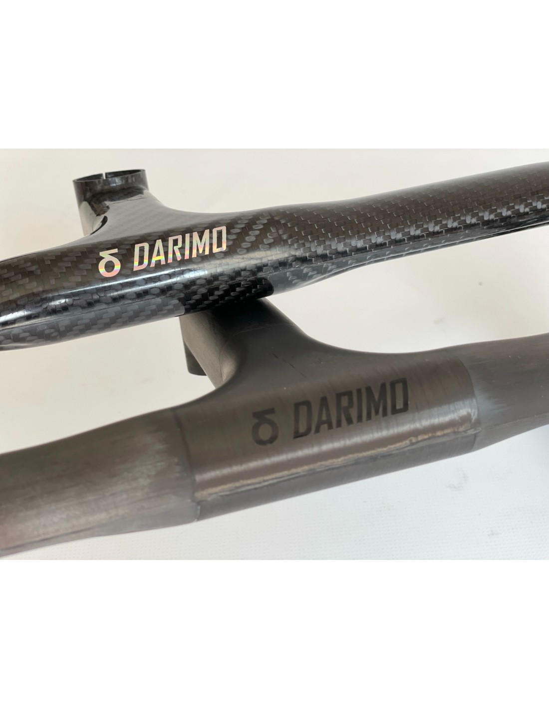 El manillar Darimo Nexum, la última innovación en manillares ligeros para bicicletas de carretera con potencia integrada. Con un peso de 220g en 420mm de ancho de manillar y 100mm de longitud de potencia, está hecho de fibra de carbono con una combinación única de tejidos que prioriza peso, resistencia y rigidez, sin comprometer la seguridad. Cada capa de fibra se coloca a mano para maximizar la resistencia/peso. Diseñado con un diámetro de 31.8mm, ofrece comodidad en largos paseos con una parte superior plana y ranuras para cables de freno y cambio. Disponible en diferentes medidas y acabados, es seguro para ciclistas de hasta 110 kg. Ideal para carretera, gravel y CX. También disponible en versión Di2 y personalizada para adaptarse a tus necesidades.