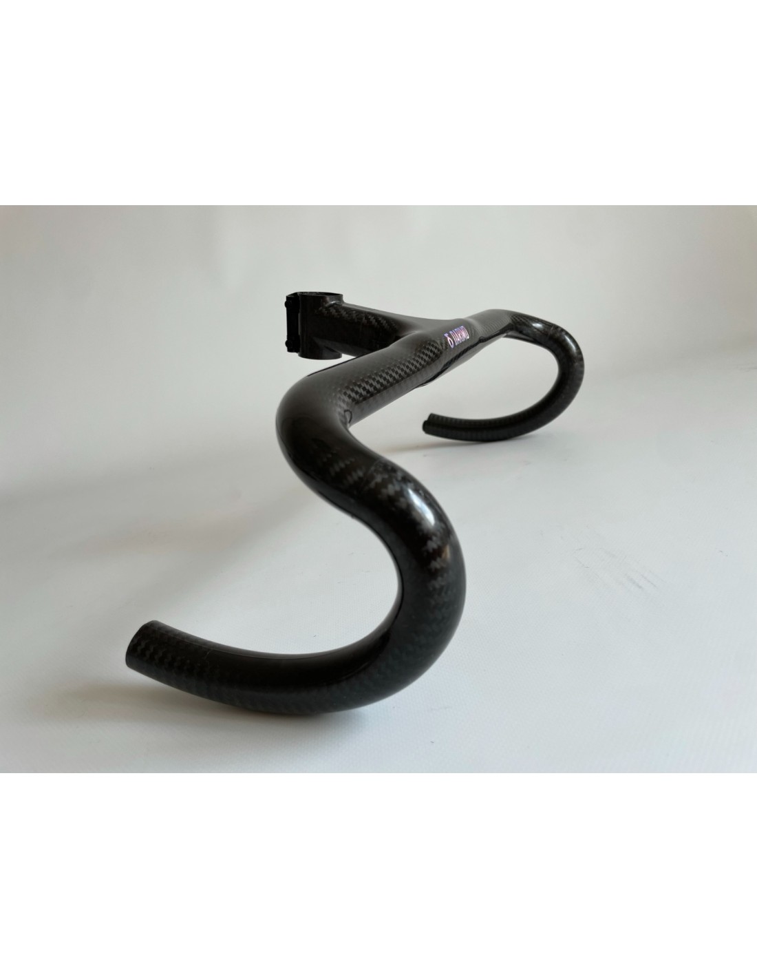 El manillar está íntegramente fabricado con fibra de carbono, con una combinación exclusiva de tejidos bidireccionales y unidireccionales con la orientación adecuada para conseguir la mejor relación peso-resistencia-rigidez sin dejar nunca de lado la seguridad. La disposición adecuada de las capas de fibra se ha conseguido tras cálculos de elementos finitos y ensayos destructivos.
