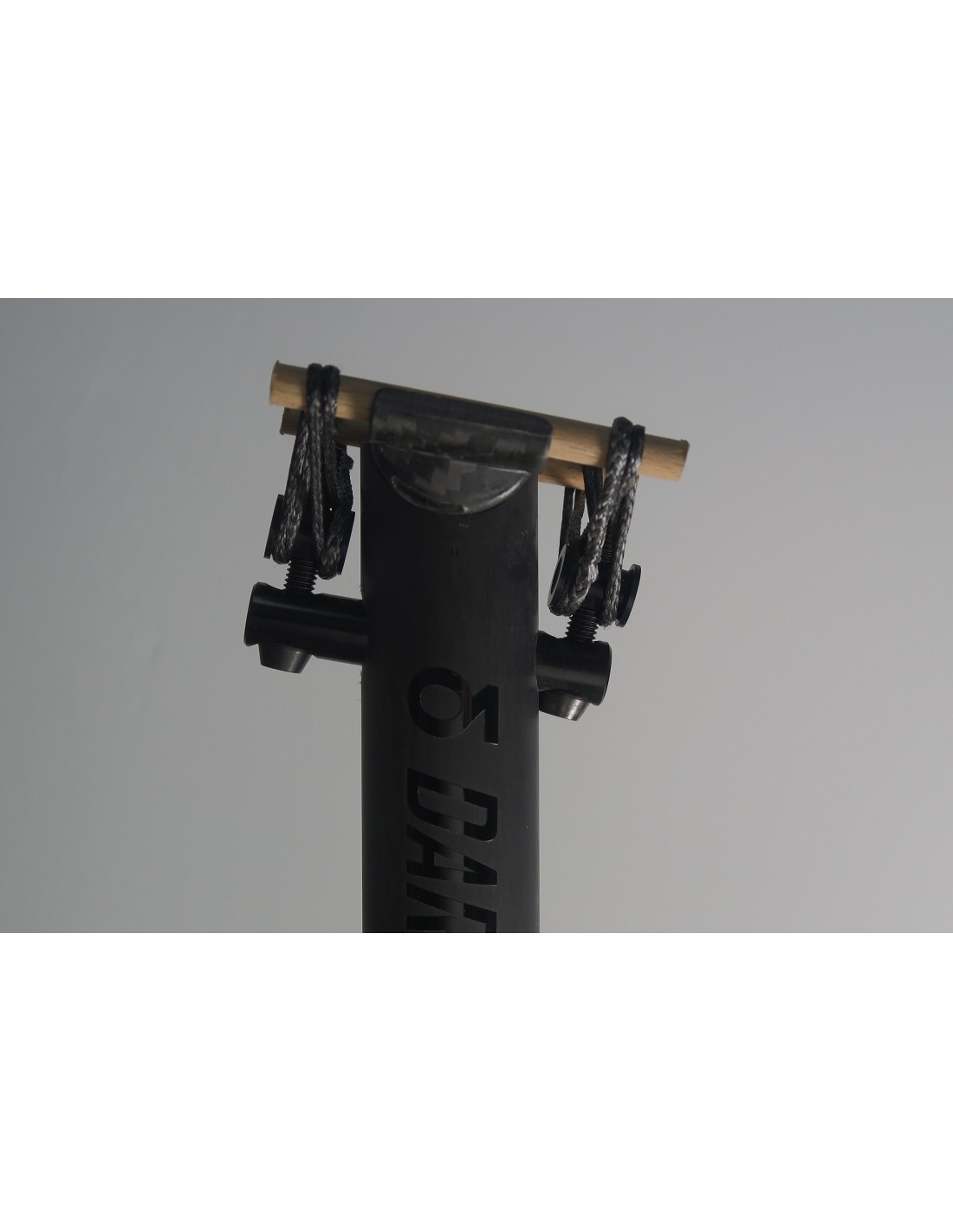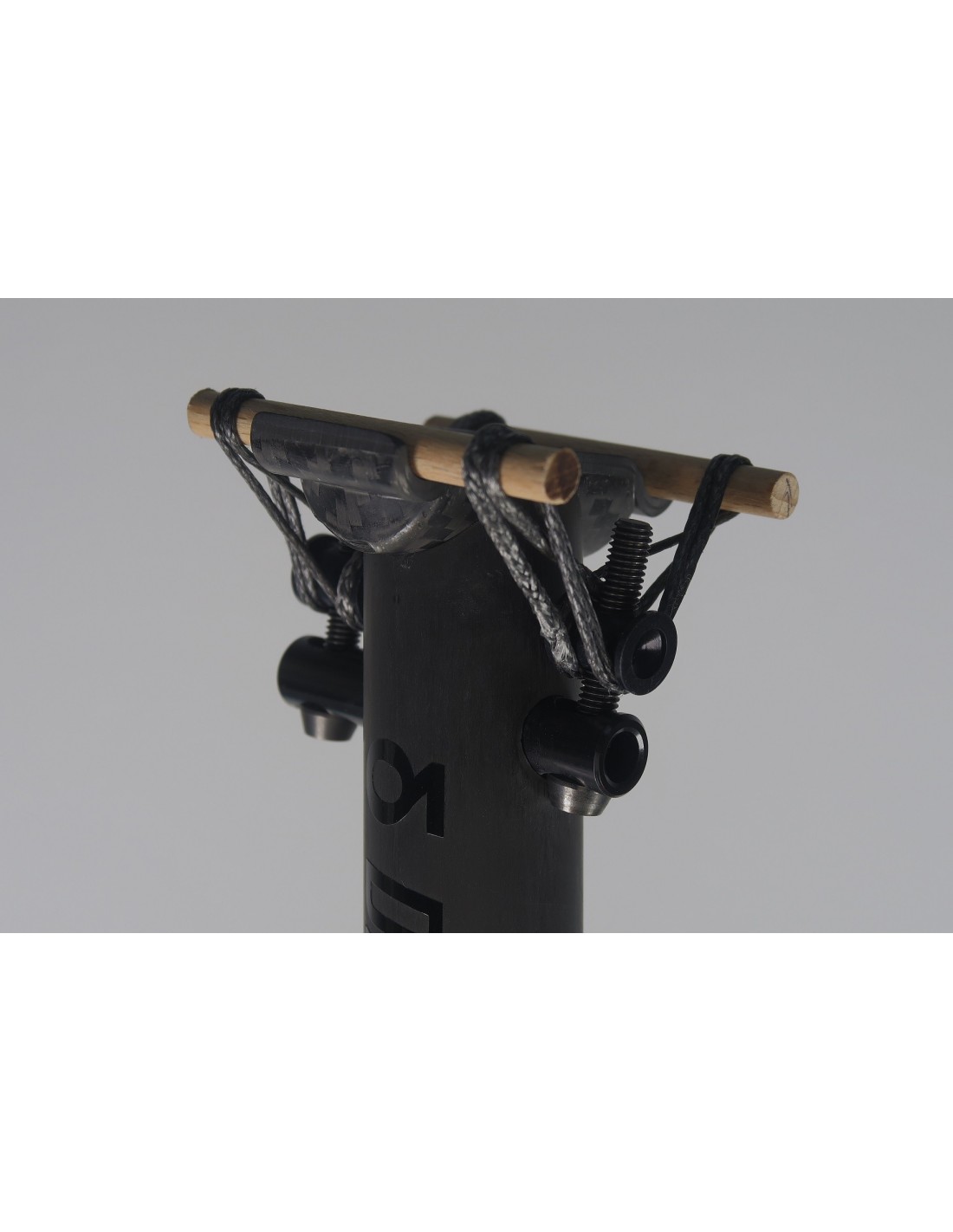 La cabeza de unión con el sillín está formada por un novedoso y único sistema con aros de Dyneema®, lo que reduce el peso de forma considerable. Un tipo de anclaje muy ligero y a la vez resistente. Las piezas poseen una amplia superficie de apoyo y sin cantos cortantes por lo que es adecuada para cualquier tipo de raíl, incluso de carbono 7×9mm.