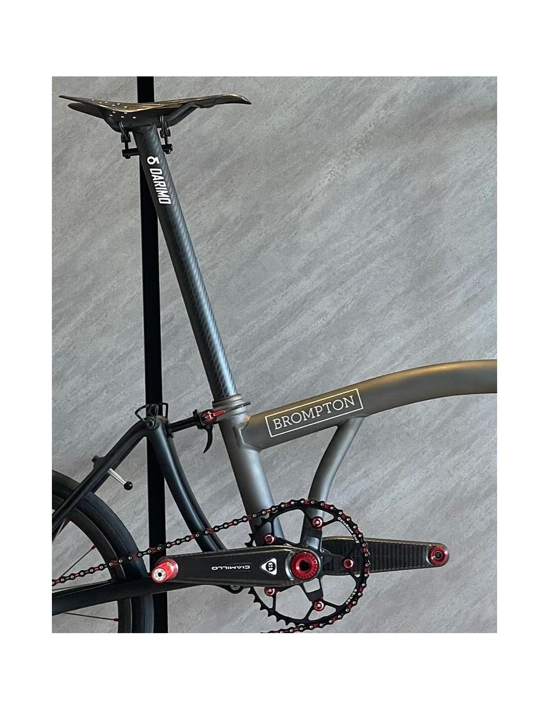 Lo último en tijas de sillín ultraligeras, la tija de sillín Darimo T1 Loop para Bicicletas Brompton detiene la báscula en los 150 gramos en la versión de 620mm de longitud.